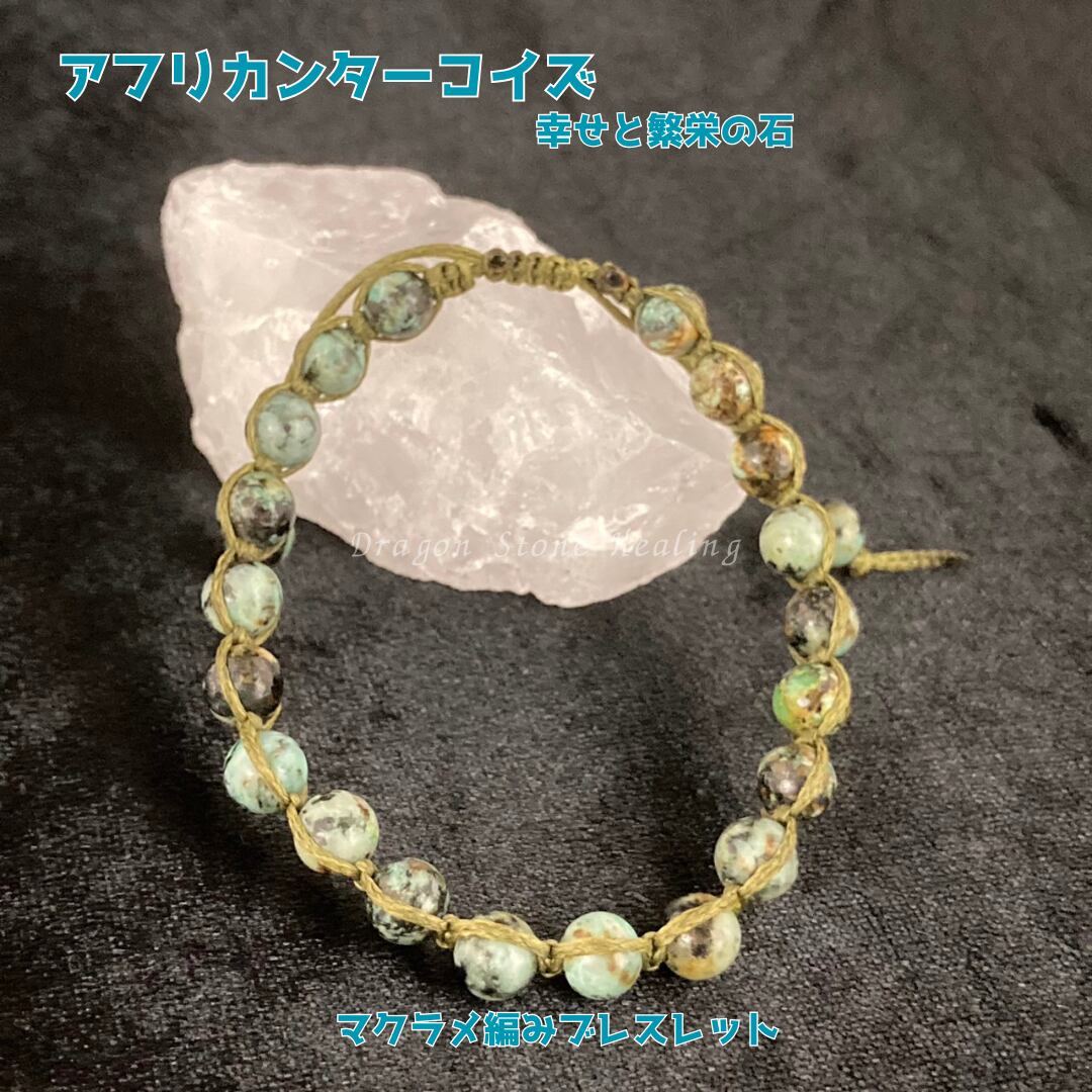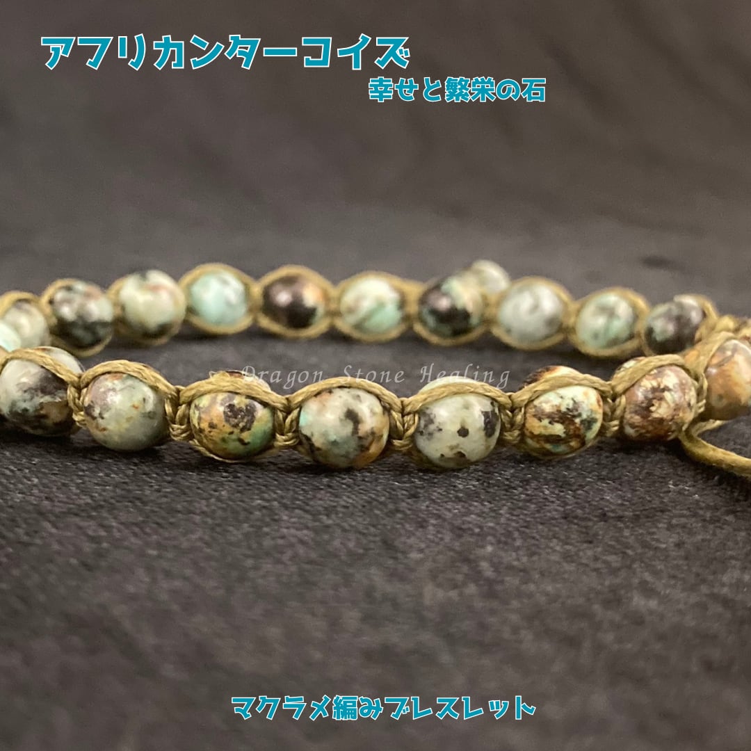 幸せと繫栄の守護石 アフリカンターコイズのマクラメ編みブレスレット 6㎜玉