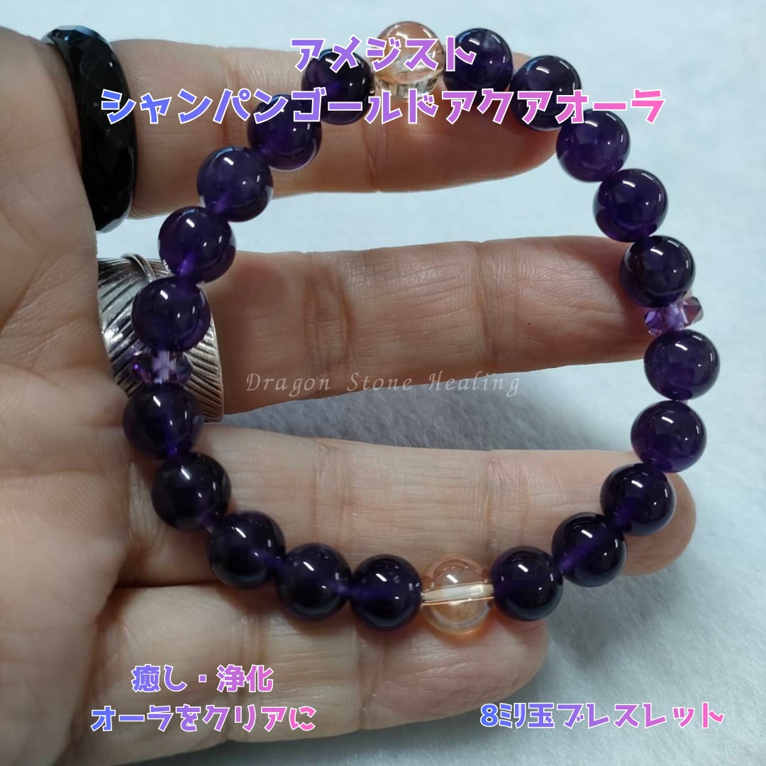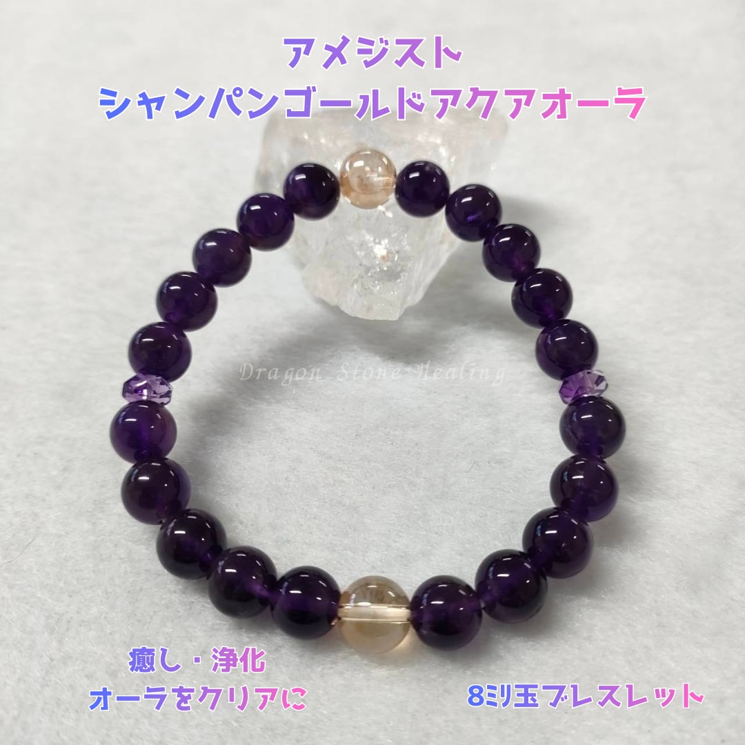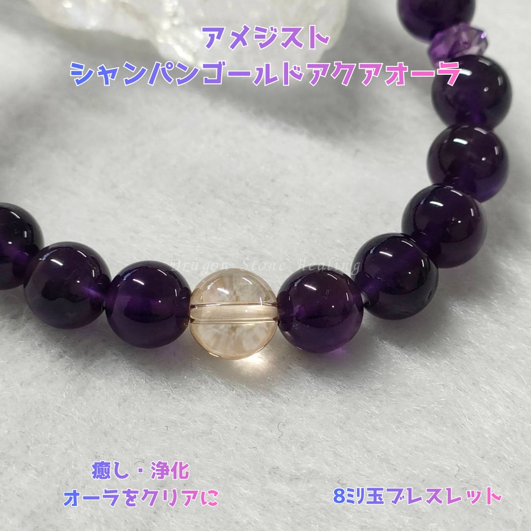 アメジスト、シャンパンゴールドアクアオーラ 8㎜