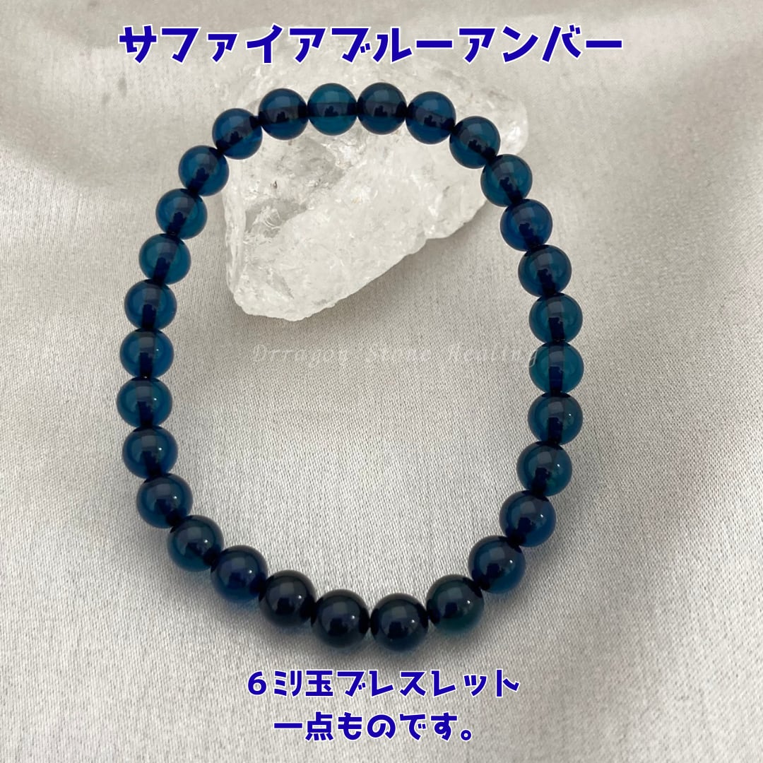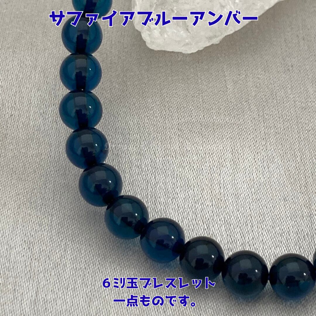サファイアブルーアンバー 6㎜玉ブレスレット