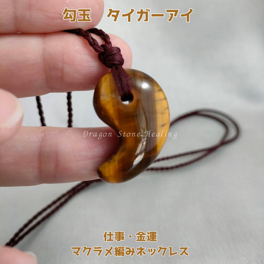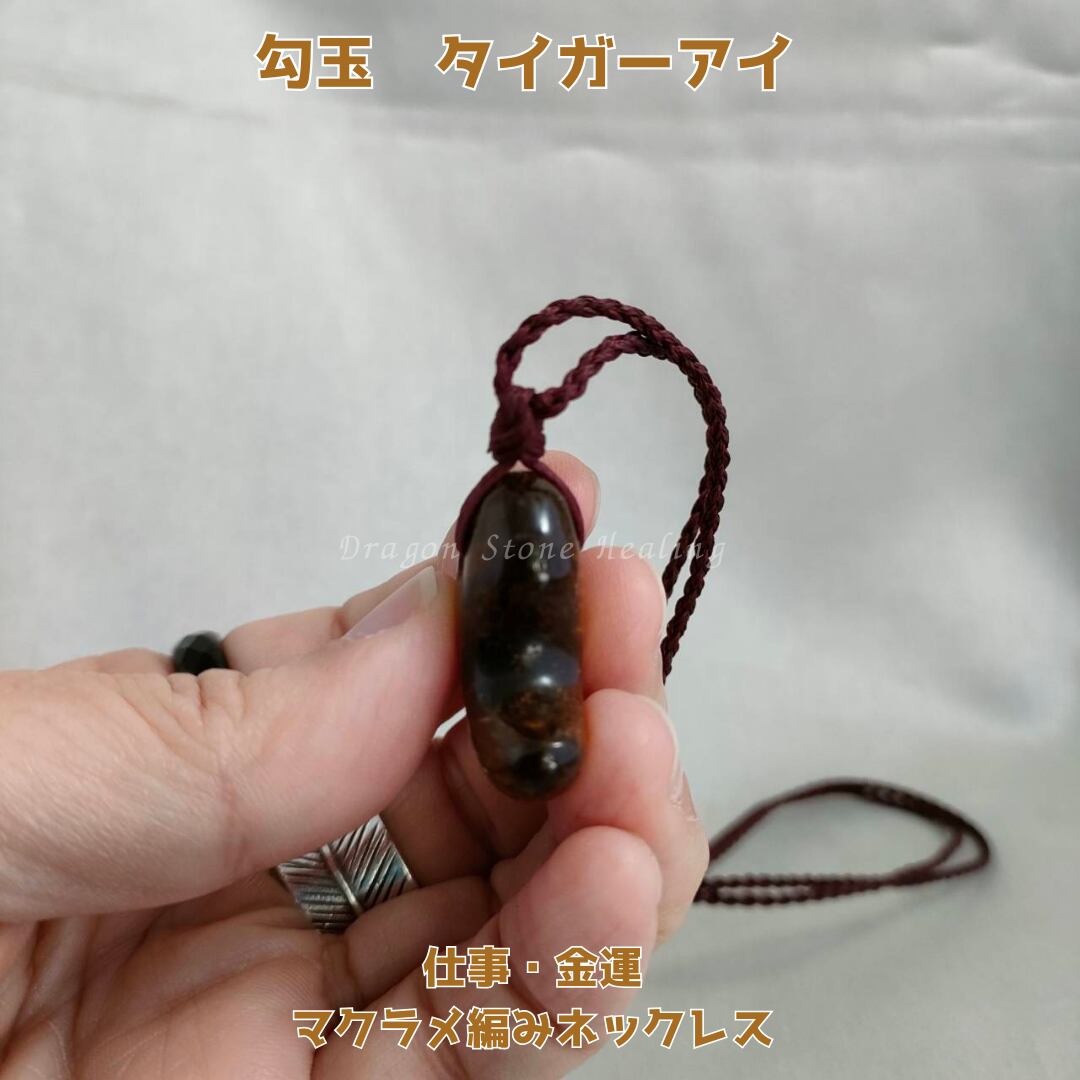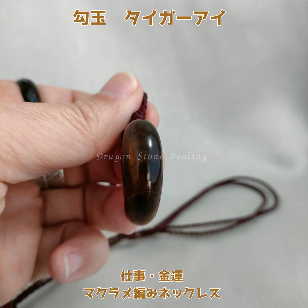 勾玉 タイガーアイのマクラメ編みネックレスです。