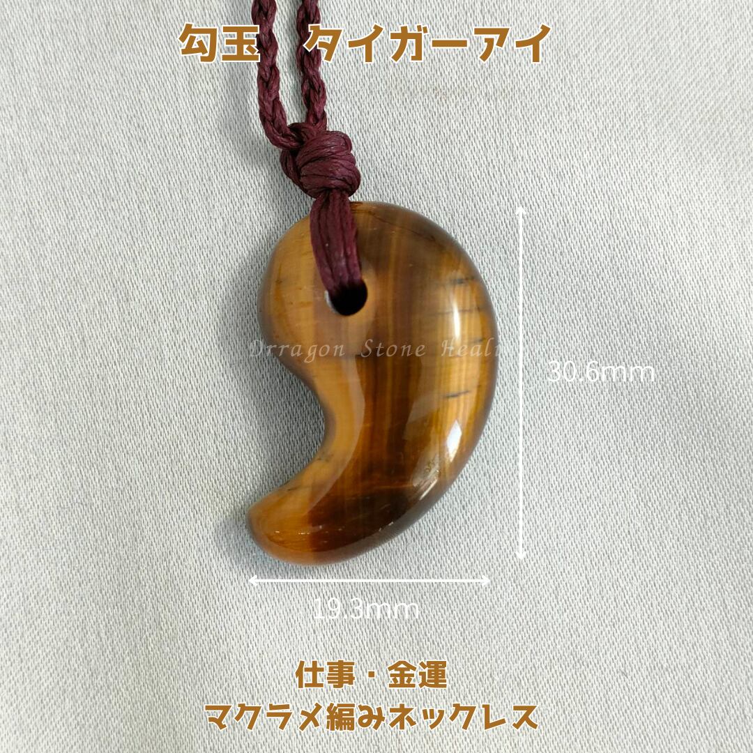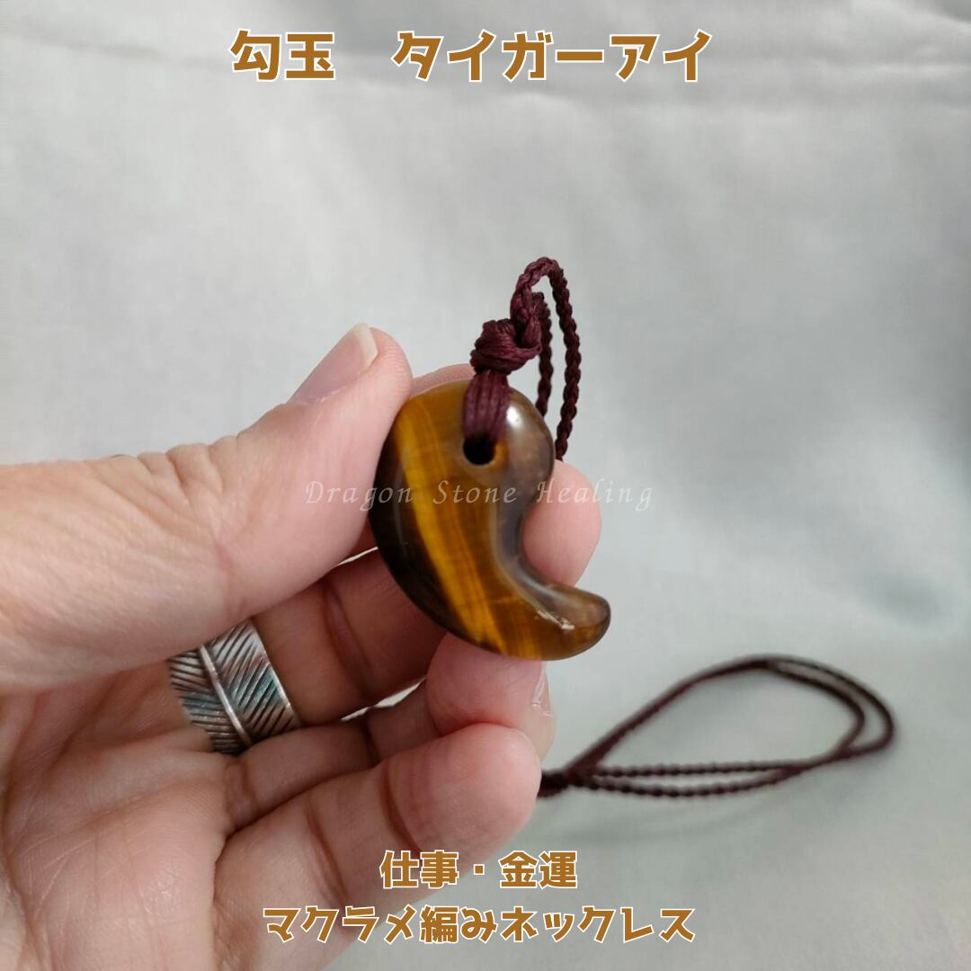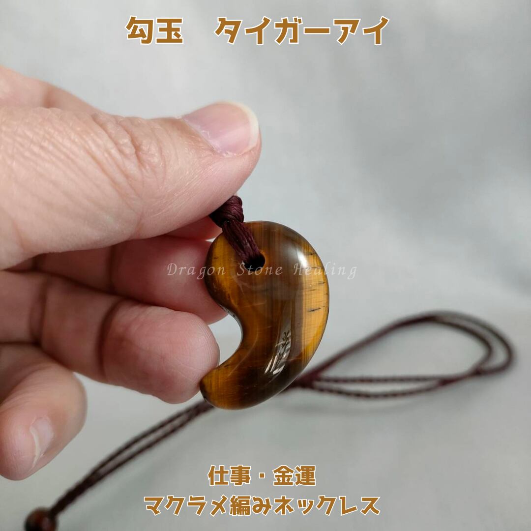 勾玉 タイガーアイのマクラメ編みネックレスです。