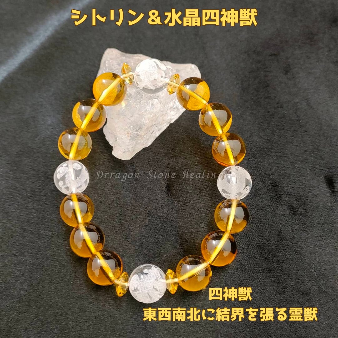 東西南北に結界を張る四神獣 シトリンのブレスレット 12ミリ玉