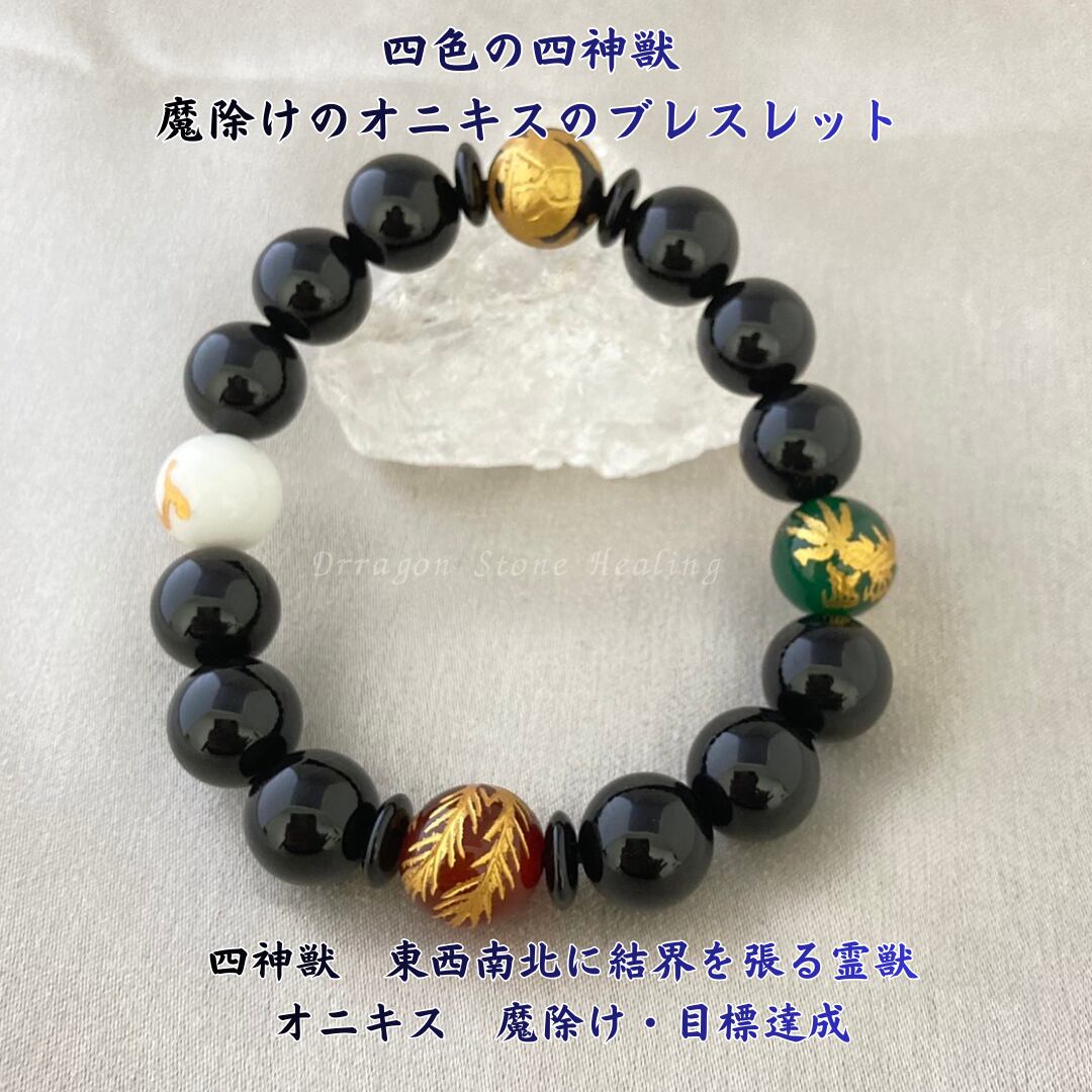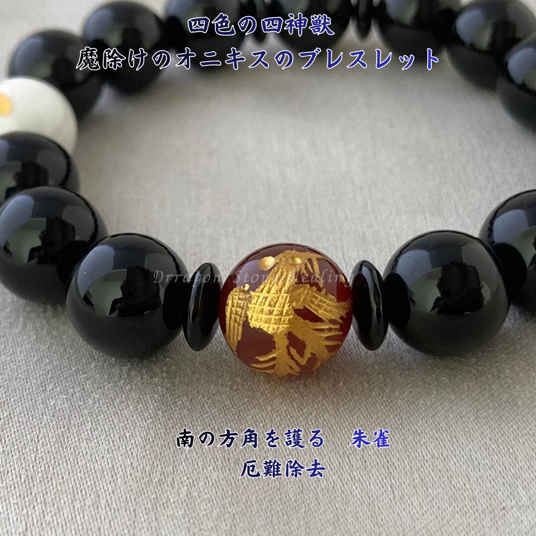 四色四神獣 12㎜(オニキス・レッドメノウ・グリーンメノウ・シャコ貝)