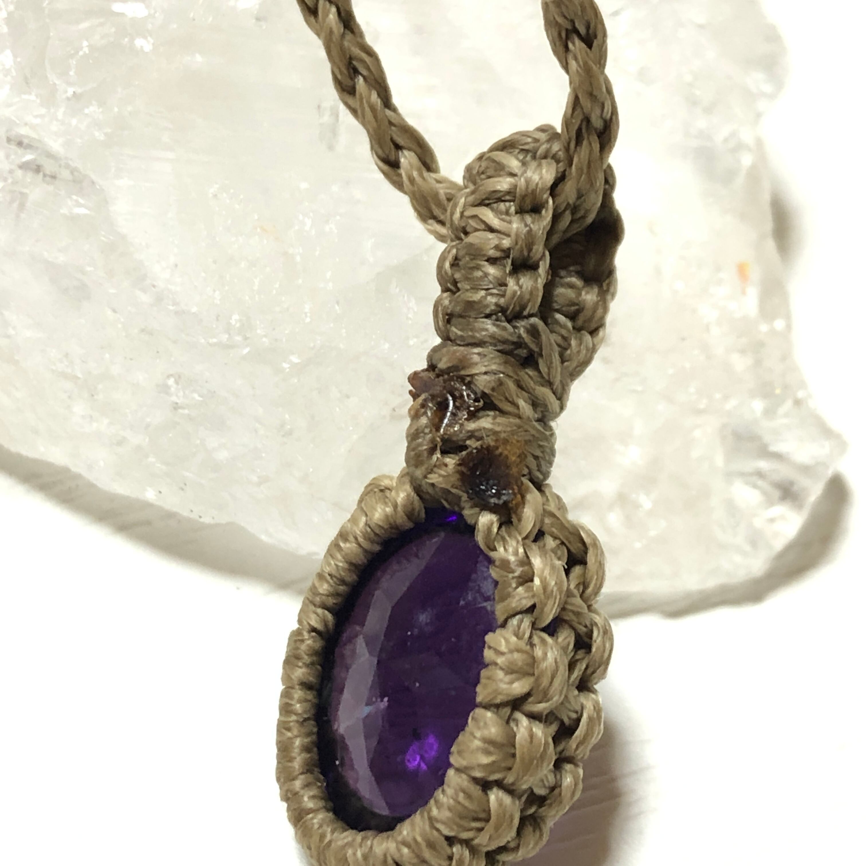マクラメ編み 端の処理を焼き止め処理をしております。一部濃く硬くなっている部分があります。ご了承ください。