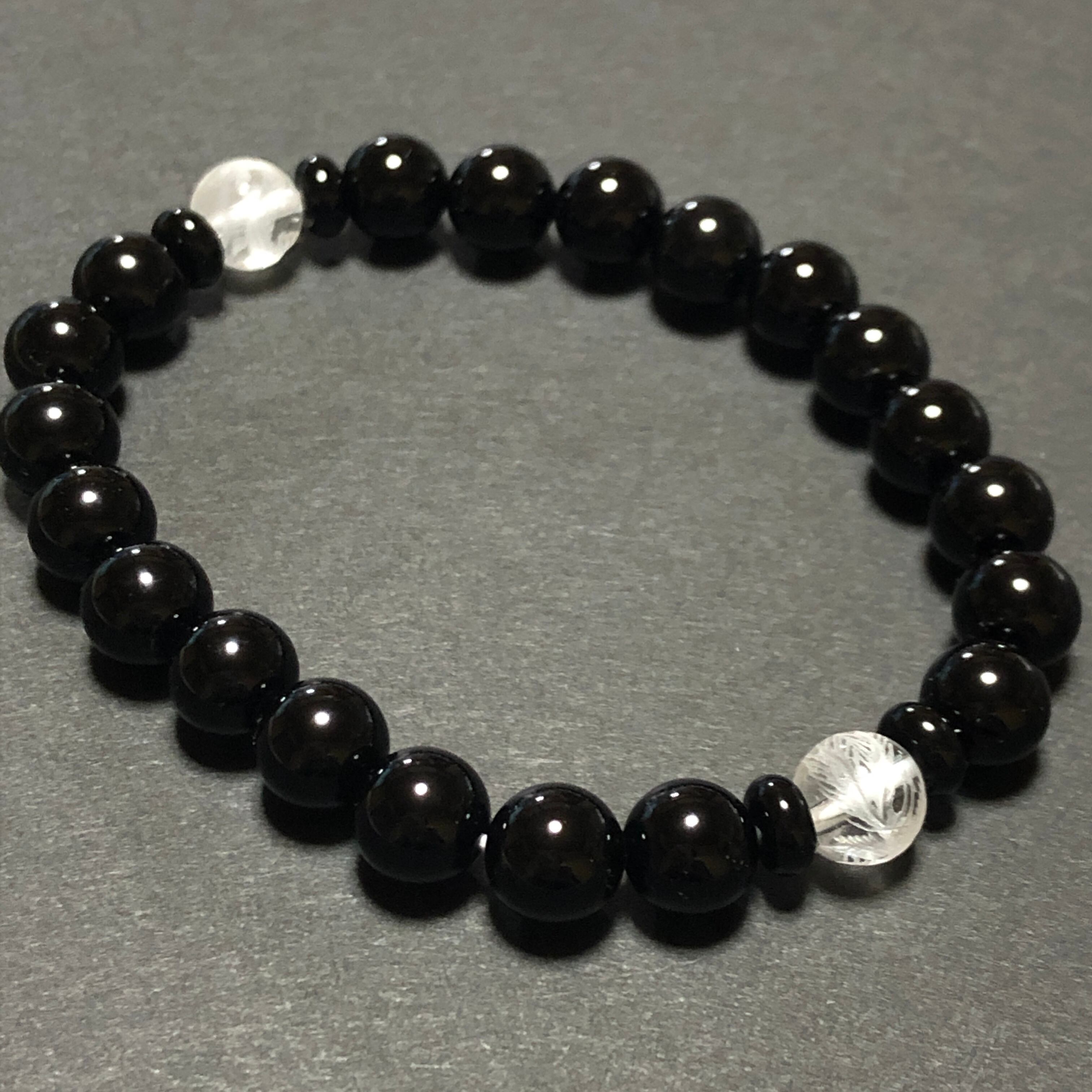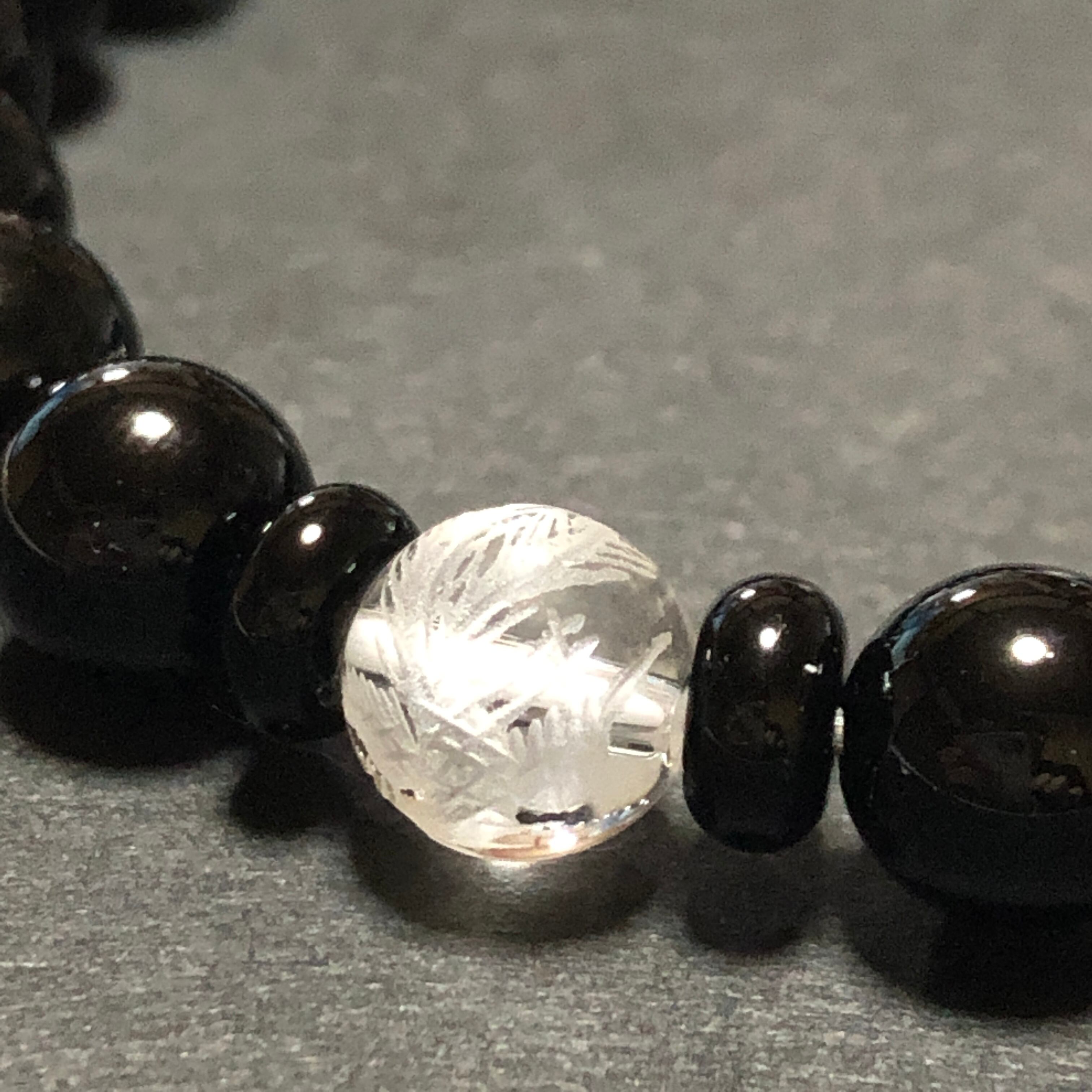 オニキス 、水晶素彫 鳳凰・五爪龍 8㎜玉