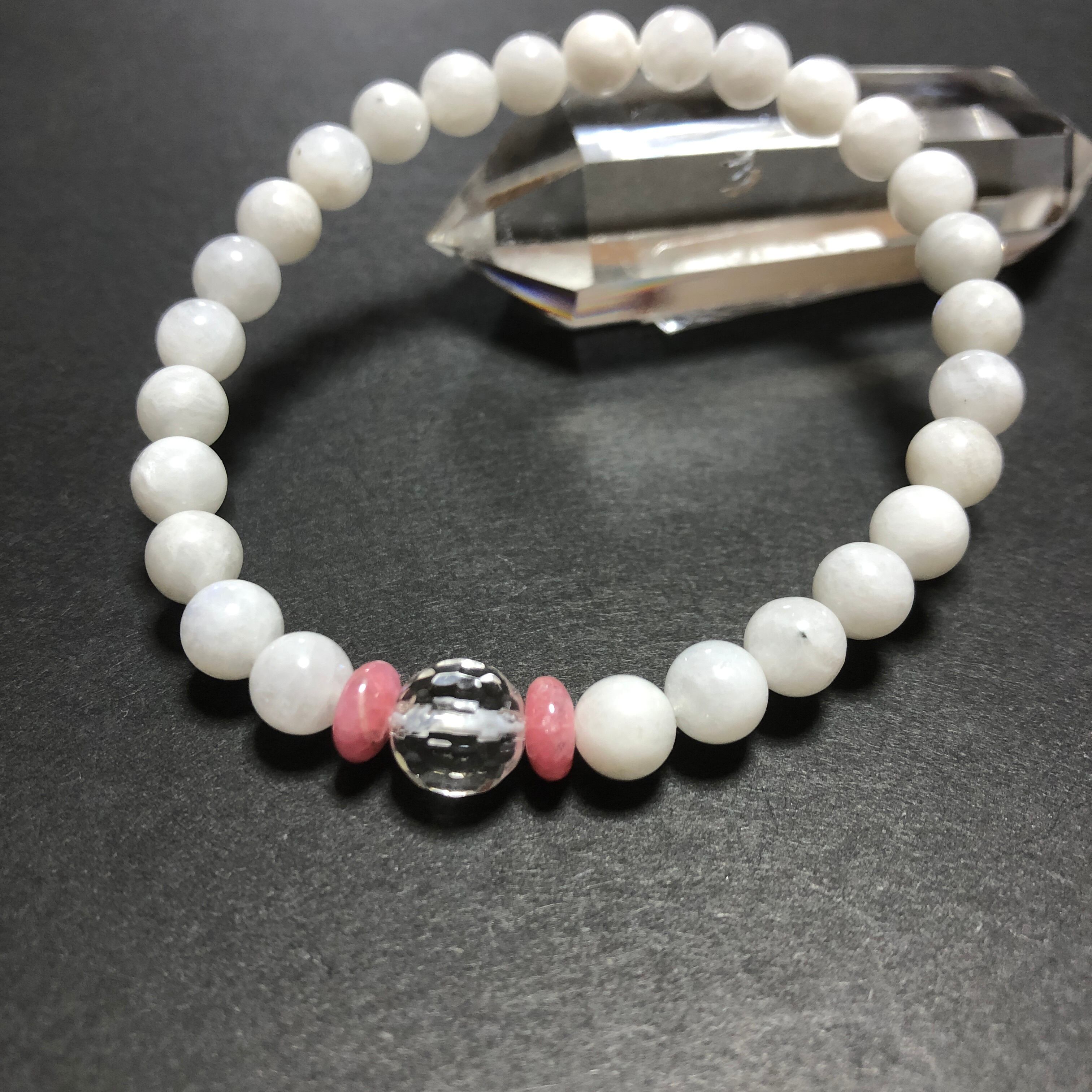 恋愛の石のブレスレット ムーンストーン・水晶・インカローズ