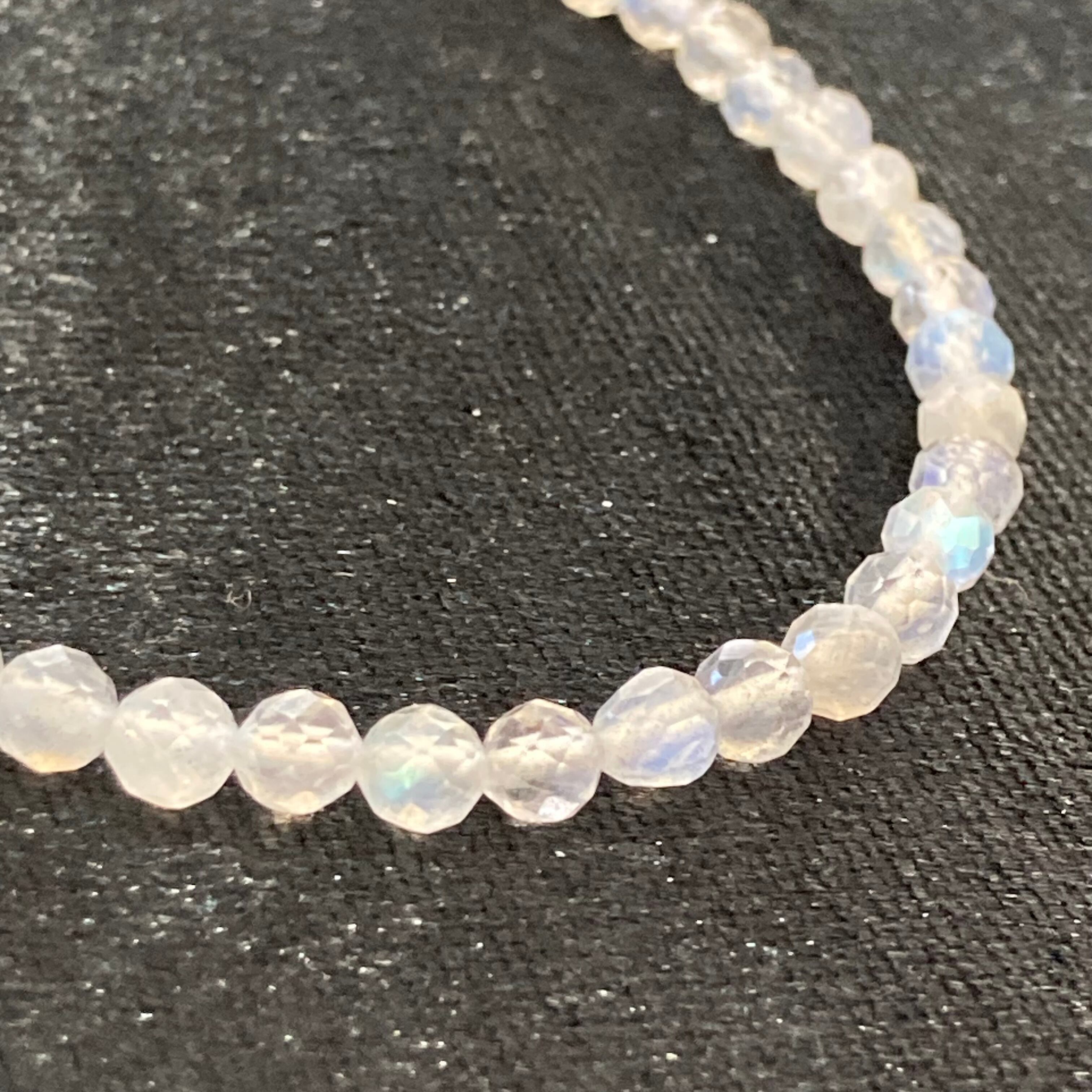 石自体はグレーの地味な色合いですが角度などによってはブルー、イエローやグリーンなど様々な色合いを見せてくれ、虹色の光を持つものは「霊性を高める」と言われ、予知能力や霊的な能力を敏感に、高次の意識レベルへ導いてくれるでしょう。
